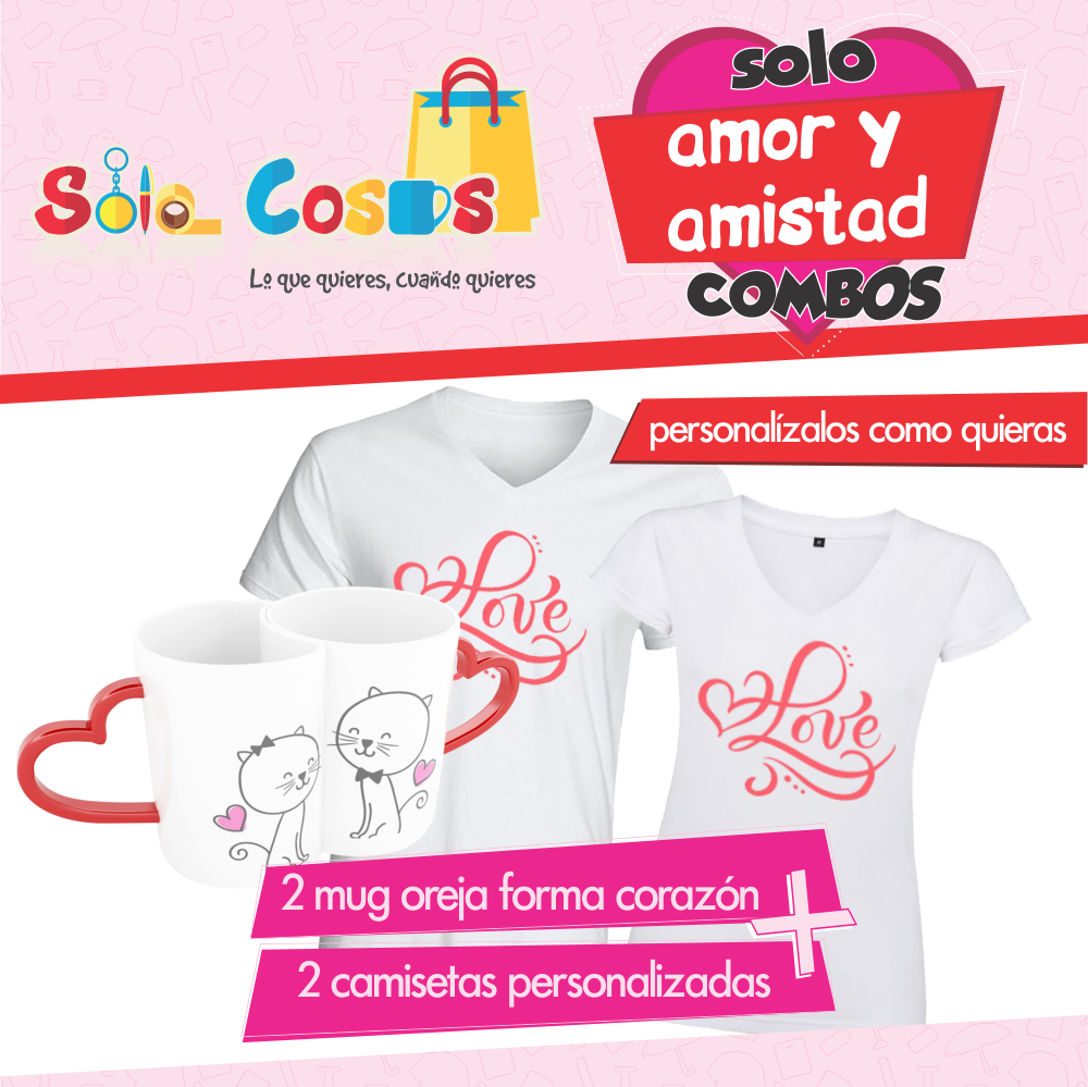 Combo mugs y camiseta Amor y Amistad
